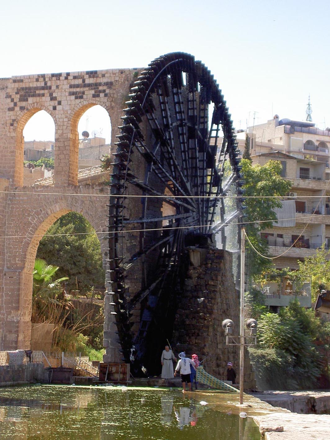 grande roue hydraulique bénie et la conduite qui mène l’eau à la grande mosquée