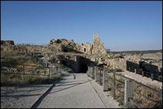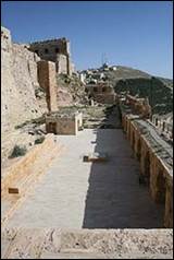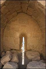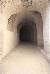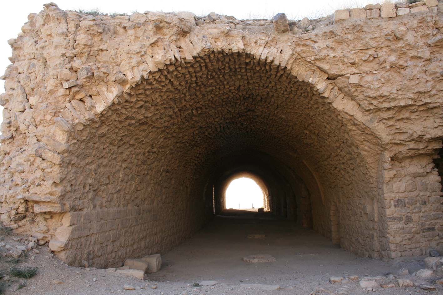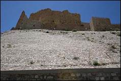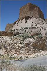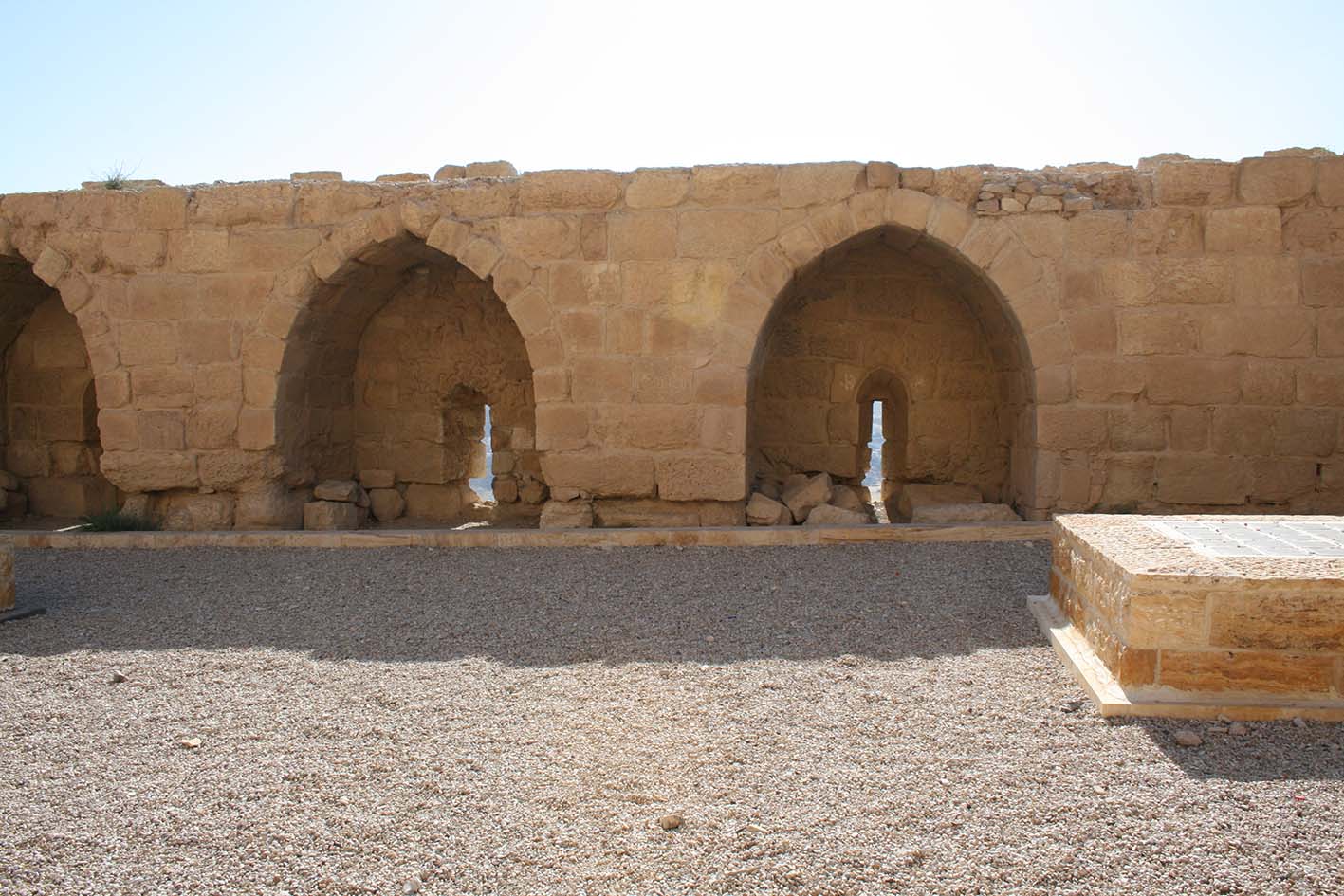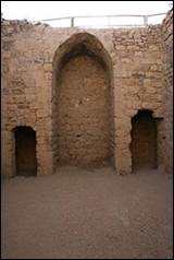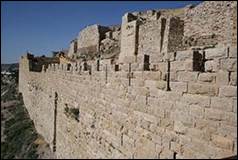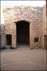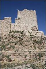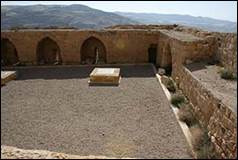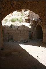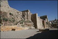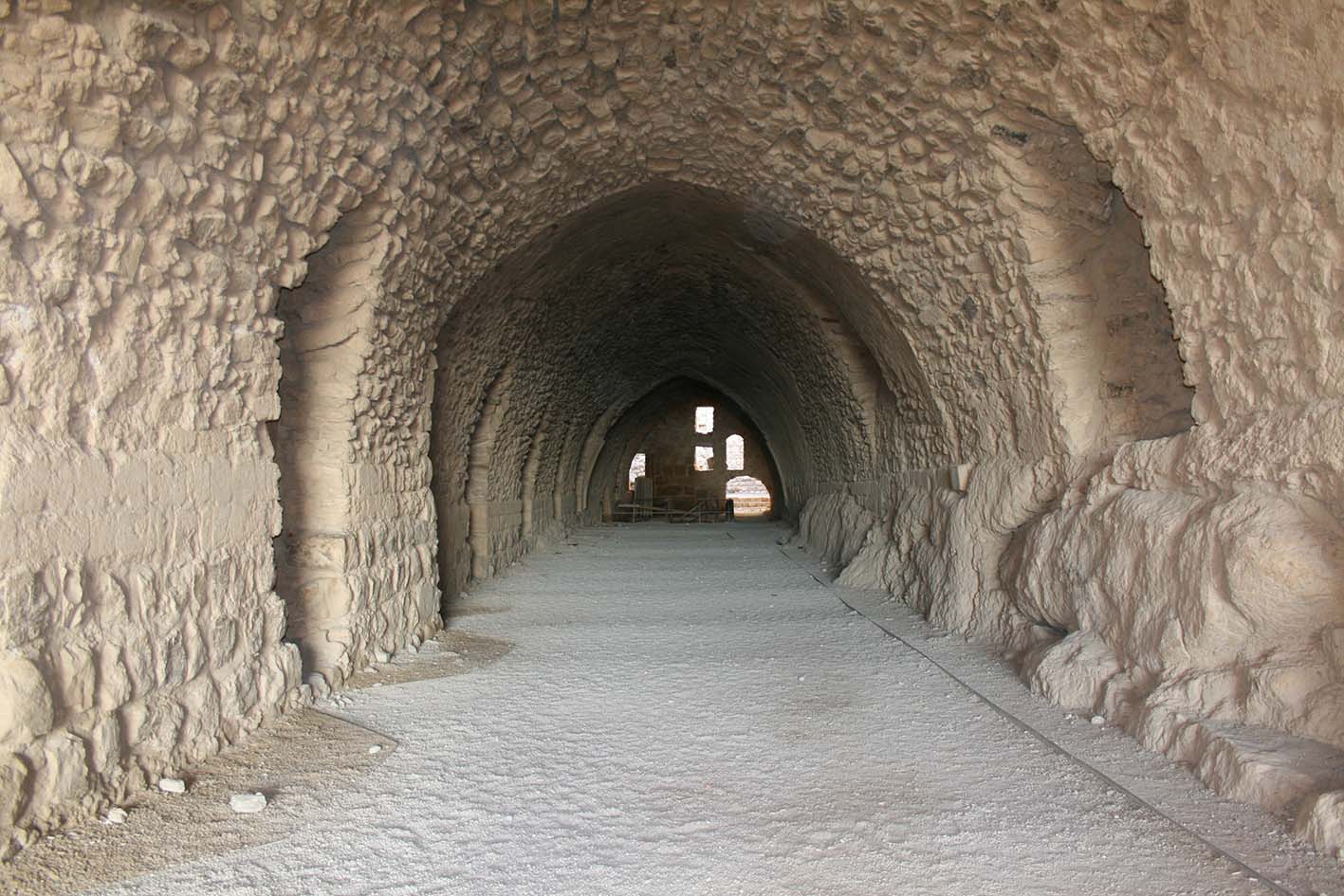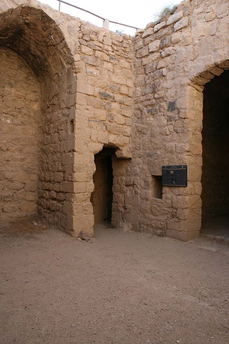 The most interesting building at Kerak is the huge Castle (now barracks) on the S. side. It is separated from the adjoining hill on the S. by a large artificial moat, and is provided with a reservoir. A moat also skirts the N. side of the fortress, and on the E. side the wall has a sloped or battered base. The walls are very thick and well preserved. The extensive galleries, corridors, and colonnades constitute it an admirable example of a Crusader's castle. The upper stories are in ruins, but the approaches to them are still in good preservation. A staircase descends into a subterranean chapel, where traces of frescoes are still visible. In the interior of the fortress are numerous cisterns. Although the springs are situated immediately outside the town, large cisterns have been constructed within the town (particularly by the tower of Beibars). The view from the top of the castle embraces the Dead Sea and the surrounding mountains. In the distance the Mt. of Olives, and even the Russian buildings beyond it, are visible. A survey of the valley of Jordan as far as the heights of Jericho is also obtained .