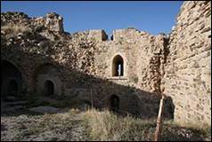 Entre le donjon du sud et le château du nord, il y avait une succession de constructions aujourd’hui ruinées, et dont il serait bien difficile d’établir un plan exact sans faire des fouilles considérables et presque impossibles dans l’état présent des choses. On remarque encore debout, cependant, l’ancienne chapelle chrétienne, dont les ornements peints qui ont été signalés par quelques voyageurs ont été détruits par ordre du cheik Midjaly. La seule trace encore visible est une tête nimbée dans un tel état de mutilation qu’il serait impossible de la reconstituer. Pour bien débrouiller toutes ces constructions éparses dans l’enceinte de la seule forteresse, il nous faudrait plus de temps que nous ne pouvons en consacrer à ces intéressantes recherches. Je ne m’attendais pas à trouver sur ce rocher éloigné des ruines aussi curieuses et aussi étendues.