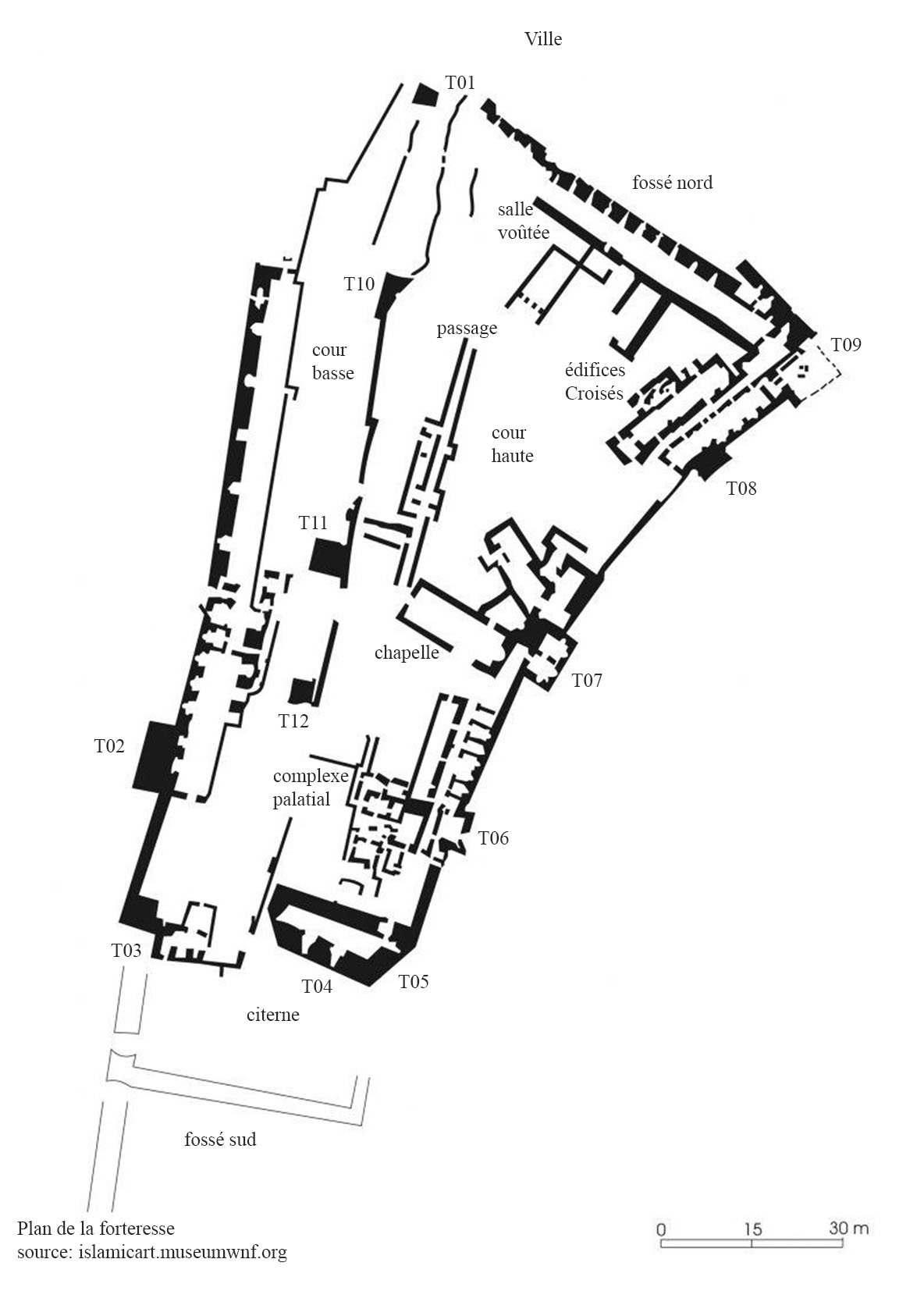 sud-ouest du château et de la 1e enceinte de la forteresse Source :