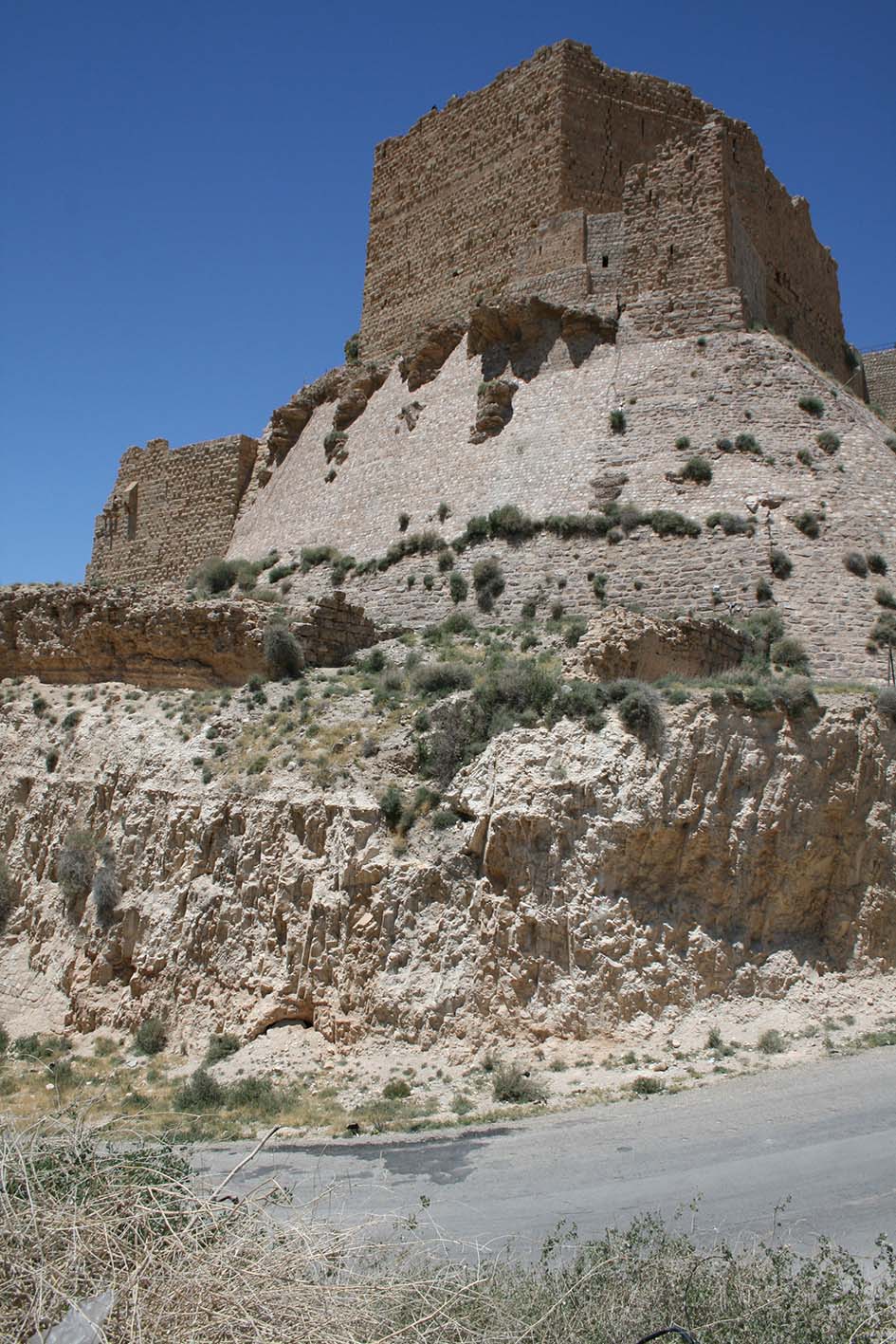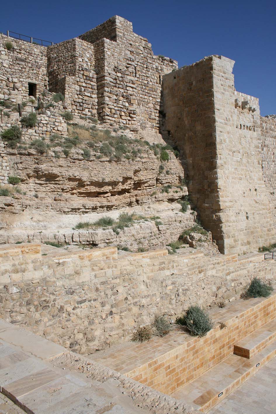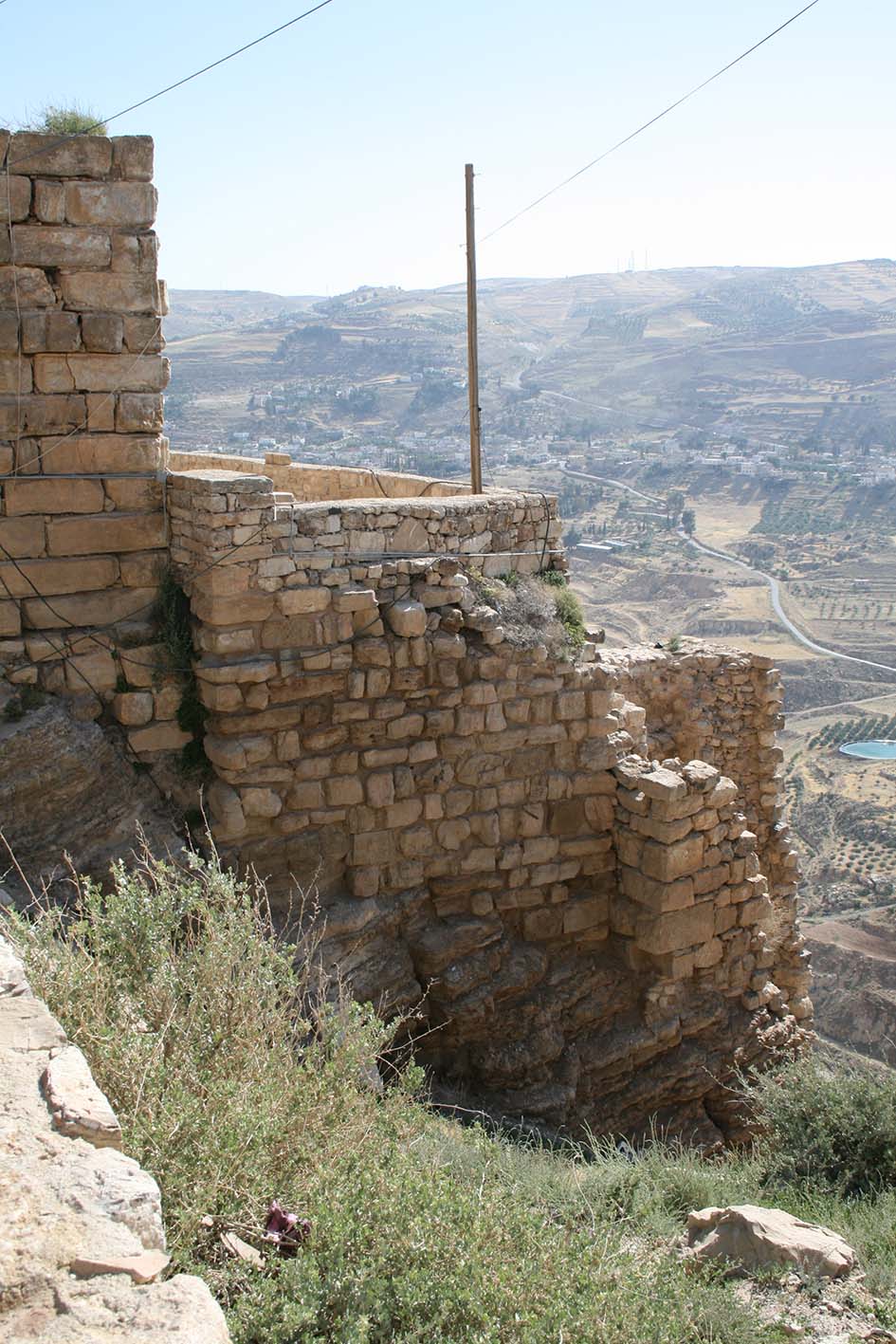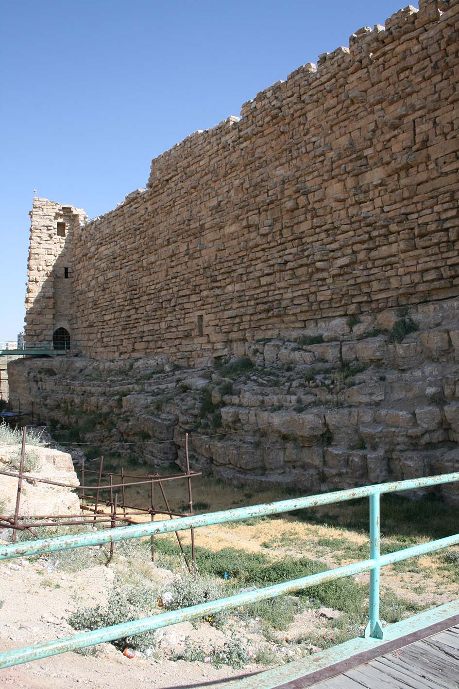 Au sud, la citadelle se termine par un mur renforcé de saillies en forme de tours et garni de meurtrières. Ses glacis descendent profondément dans la tranchée qui, de haute antiquité, a été taillée dans le col rattachant la colline d'el-Kérak au haut plateau. Au fond de cette tranchée, on a établi un immense réservoir, birket Oumm en-Nasr, auquel on descendait du château fort par un étroit couloir taillé dans le roc. Un passage semblable reliait la citadelle à la source d'es-Sitt et à celle d'es-Safsaféh située à un niveau inférieur de 50 mètres ; ces sortes d'escaliers sont devenus impraticables.