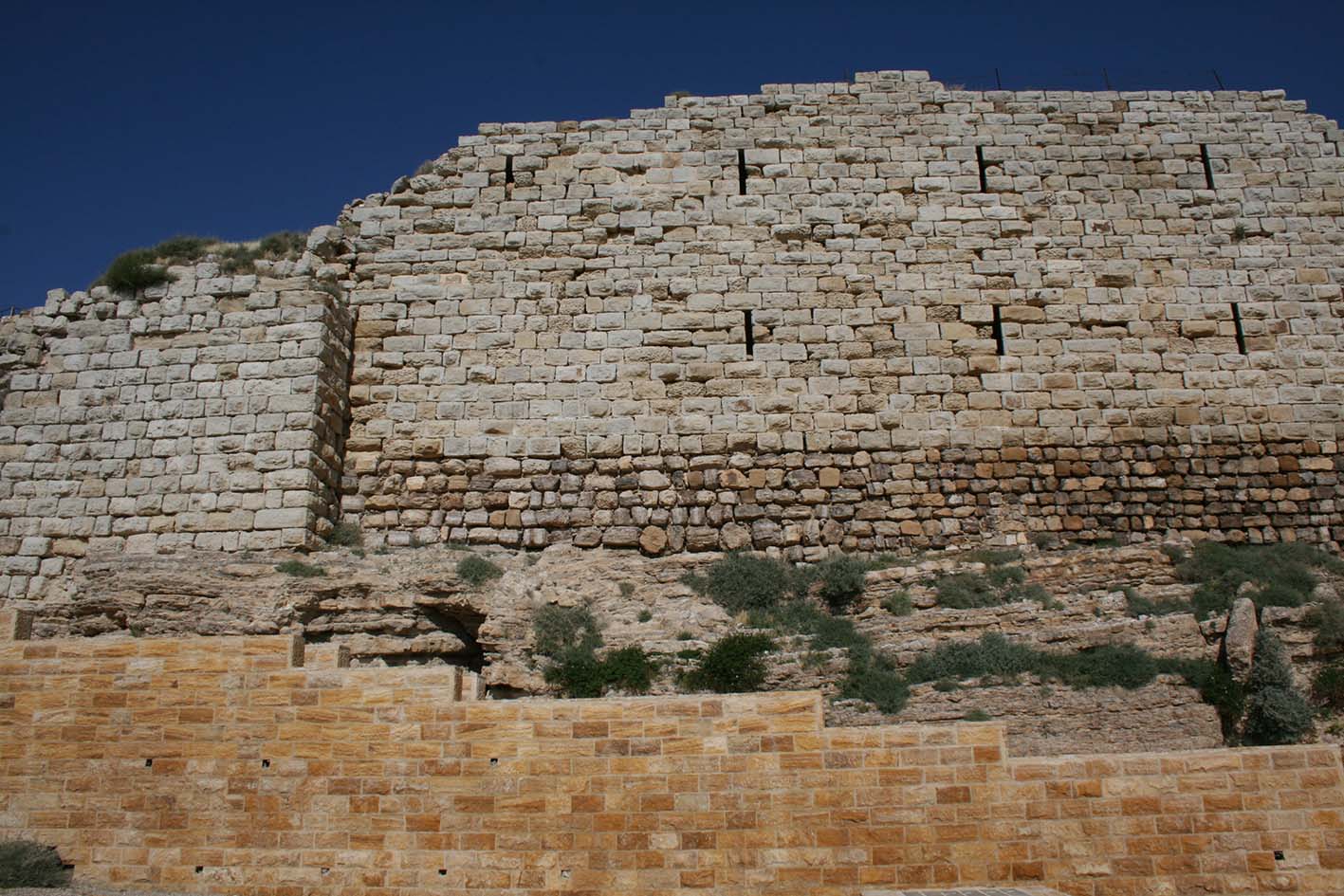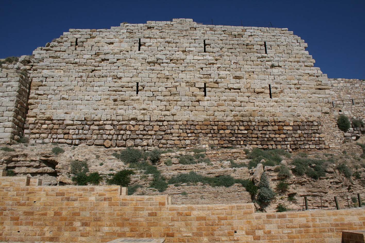 « But far more important and extensive is the great castle at the southern angle. This being the most exposed point, owing to the shallowness of the Wady Kobeisheh, has been the most carefully fortified. It
