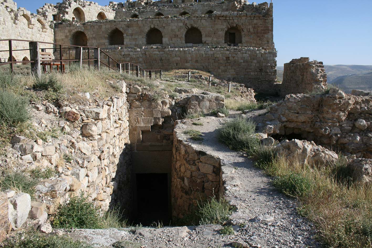 La première mention d’une forteresse à Kerak a lieu lors de sa construction en 1142 par Payen le Boutelier, seigneur d’Outre Jourdain. La forteresse est achevée par Philippe de Naplouse.