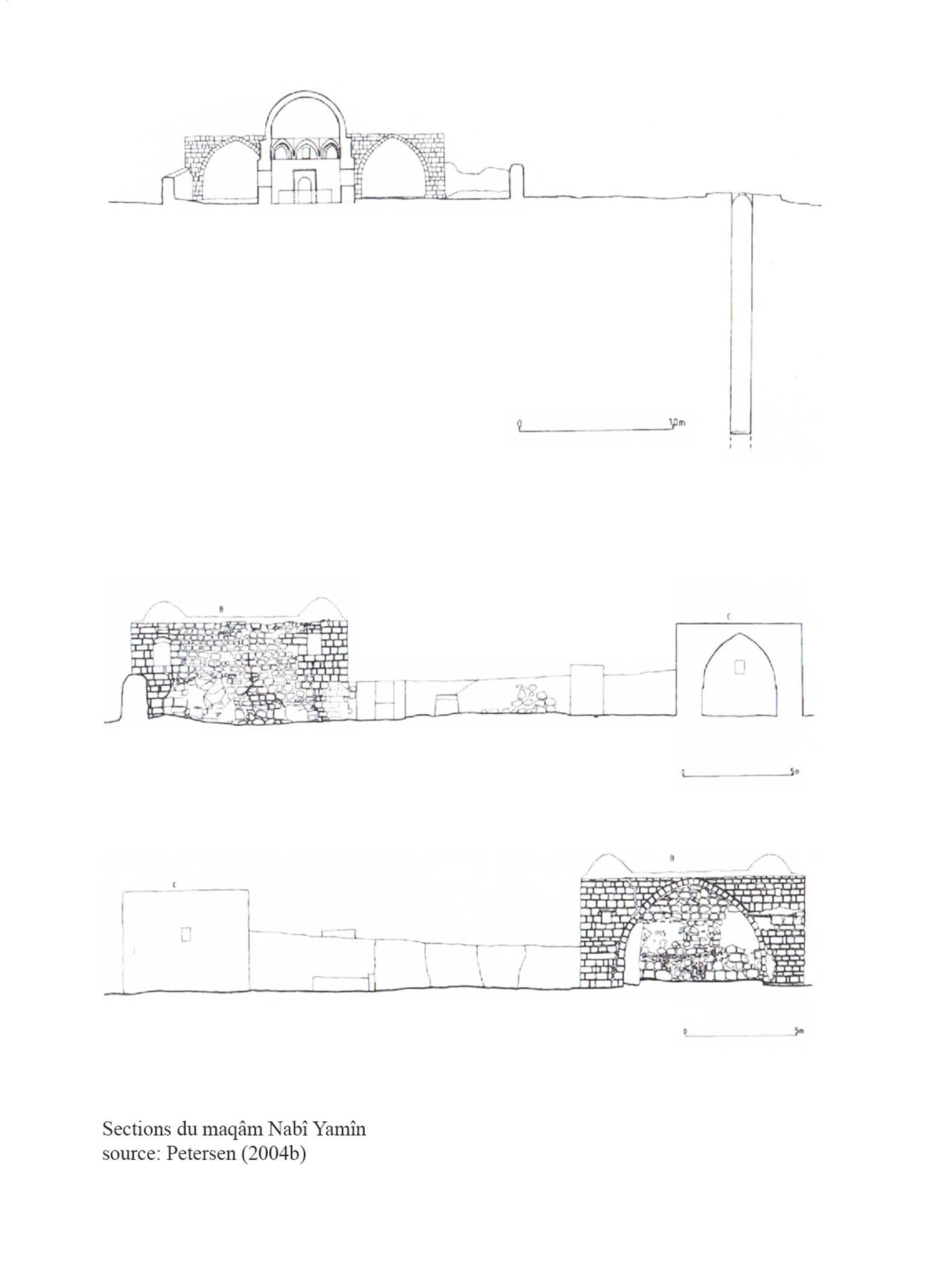 Une salle de prière couverte (riwaq) avec trois arcades ouvertes (ill.16, 17). Une inscription de deux lignes datée 1223/1807 se trouvait sur le côté nord de l’arche médiane.