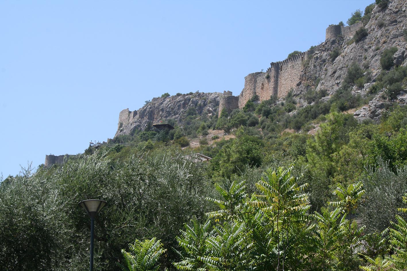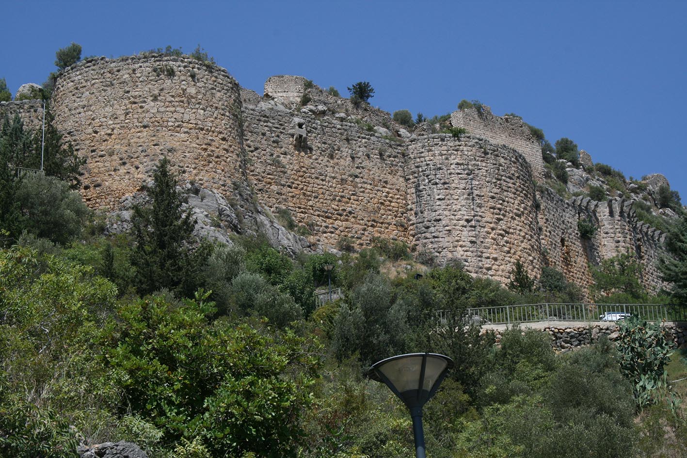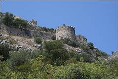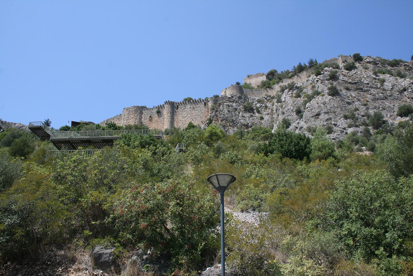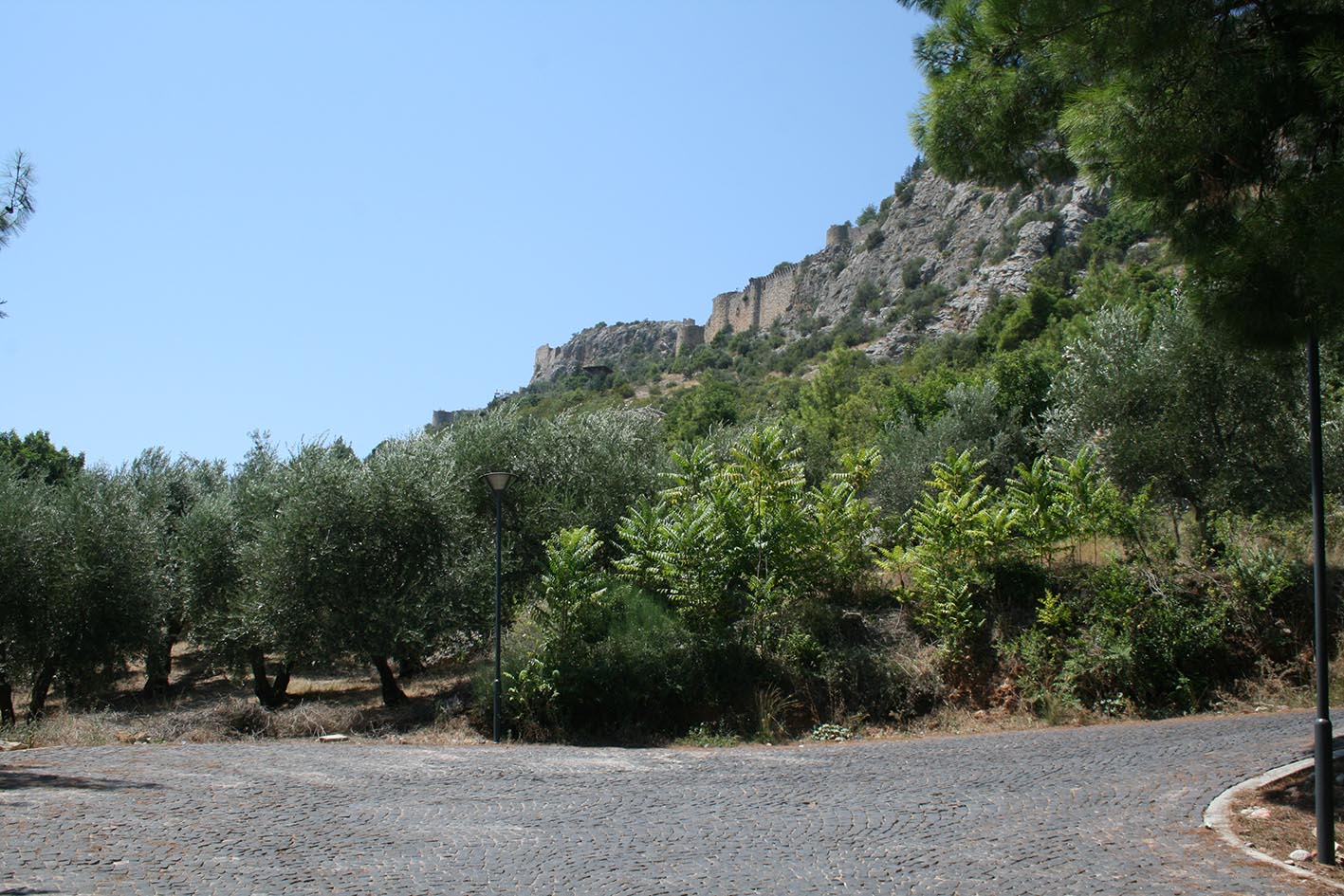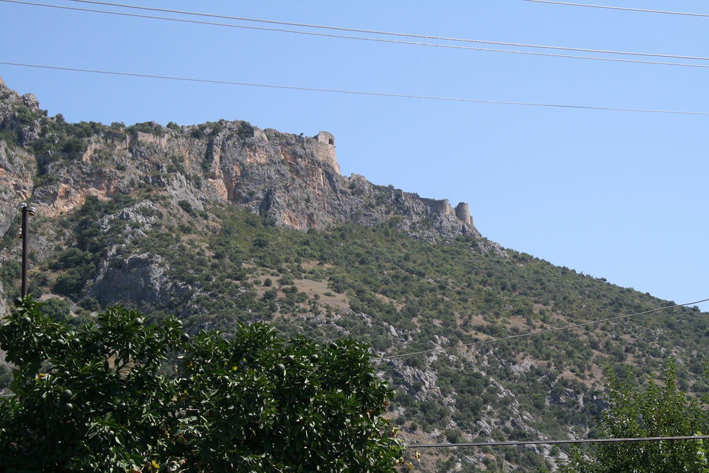 « Le château couronne le rocher sur lequel il est assis. Il ne présente que quelques buissons brûlés par le soleil, et des herbes desséchées que broutent des troupeaux de chèvres et de moutons (…).