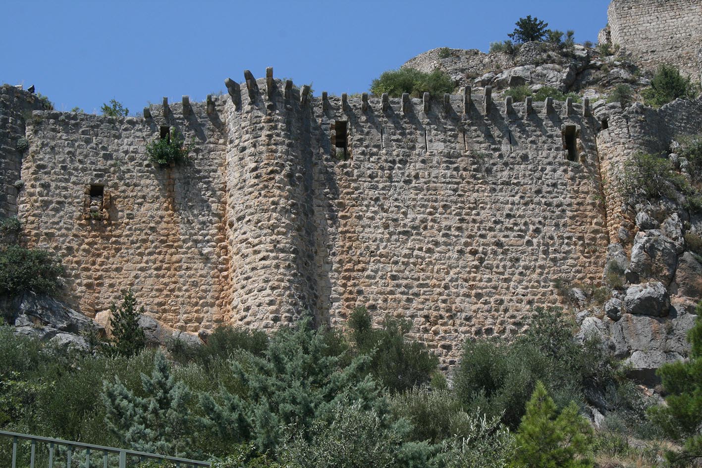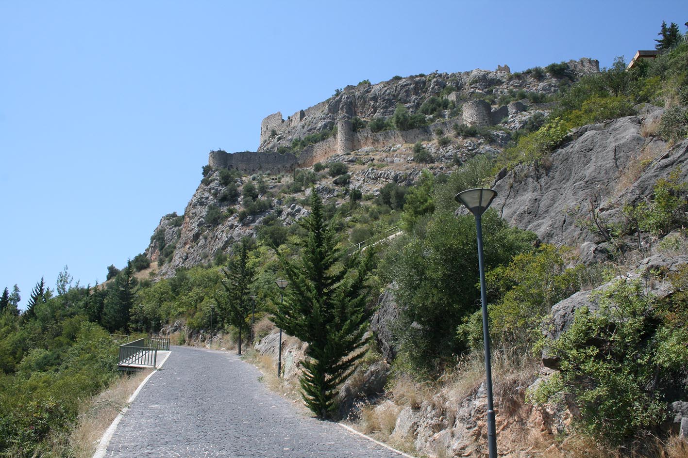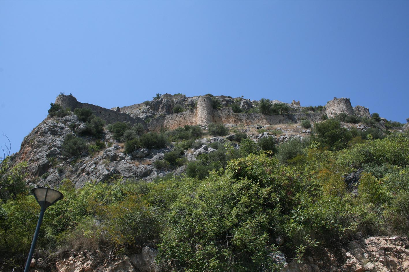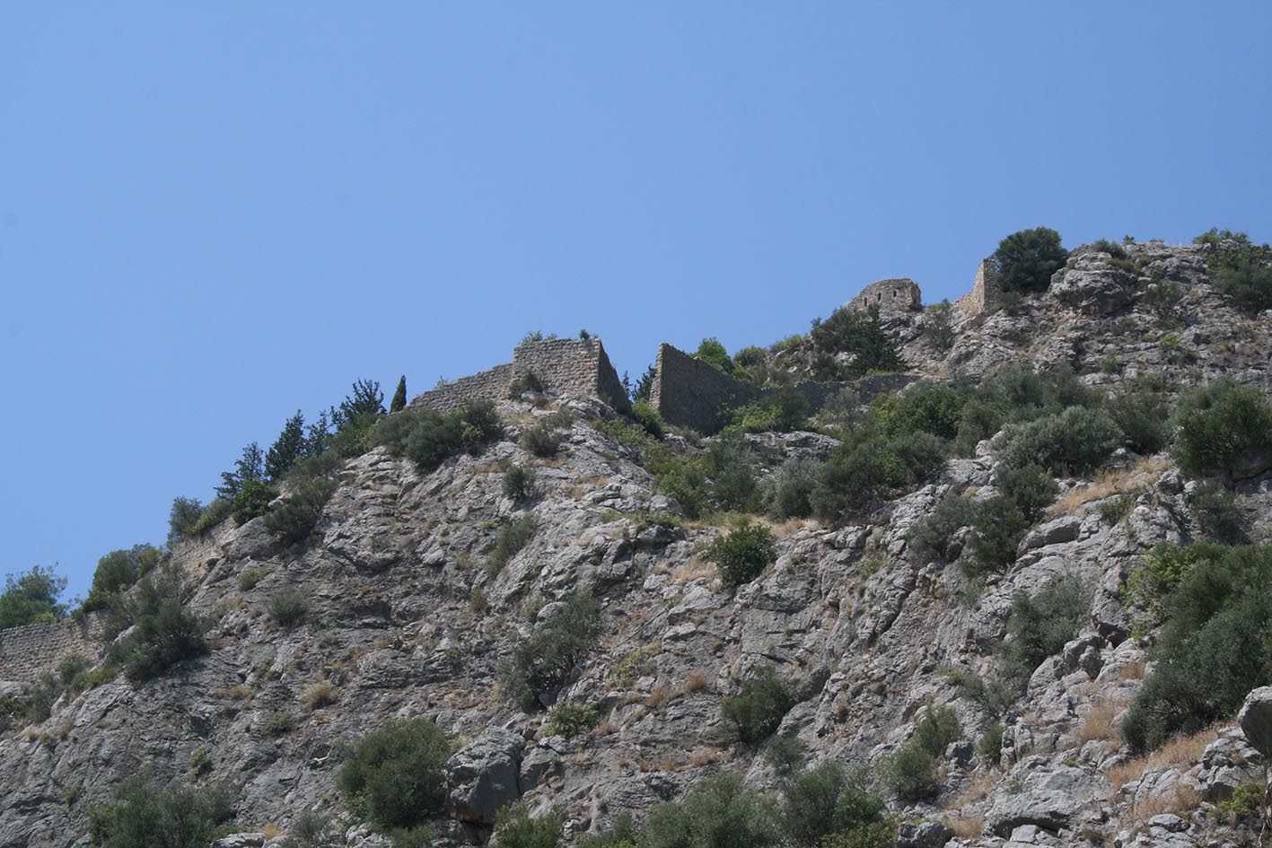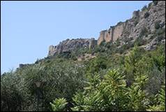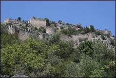 « Le château couronne le rocher sur lequel il est assis. Il ne présente que quelques buissons brûlés par le soleil, et des herbes desséchées que broutent des troupeaux de chèvres et de moutons (…).