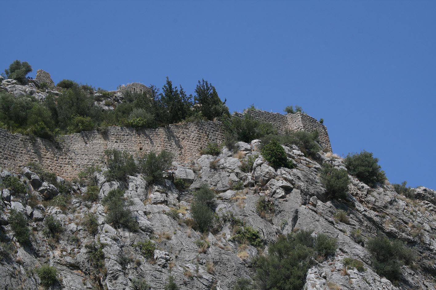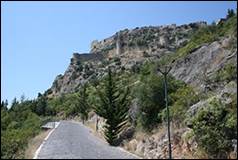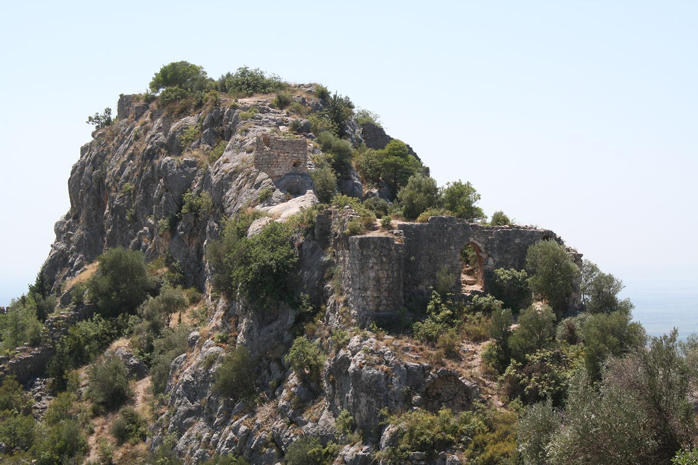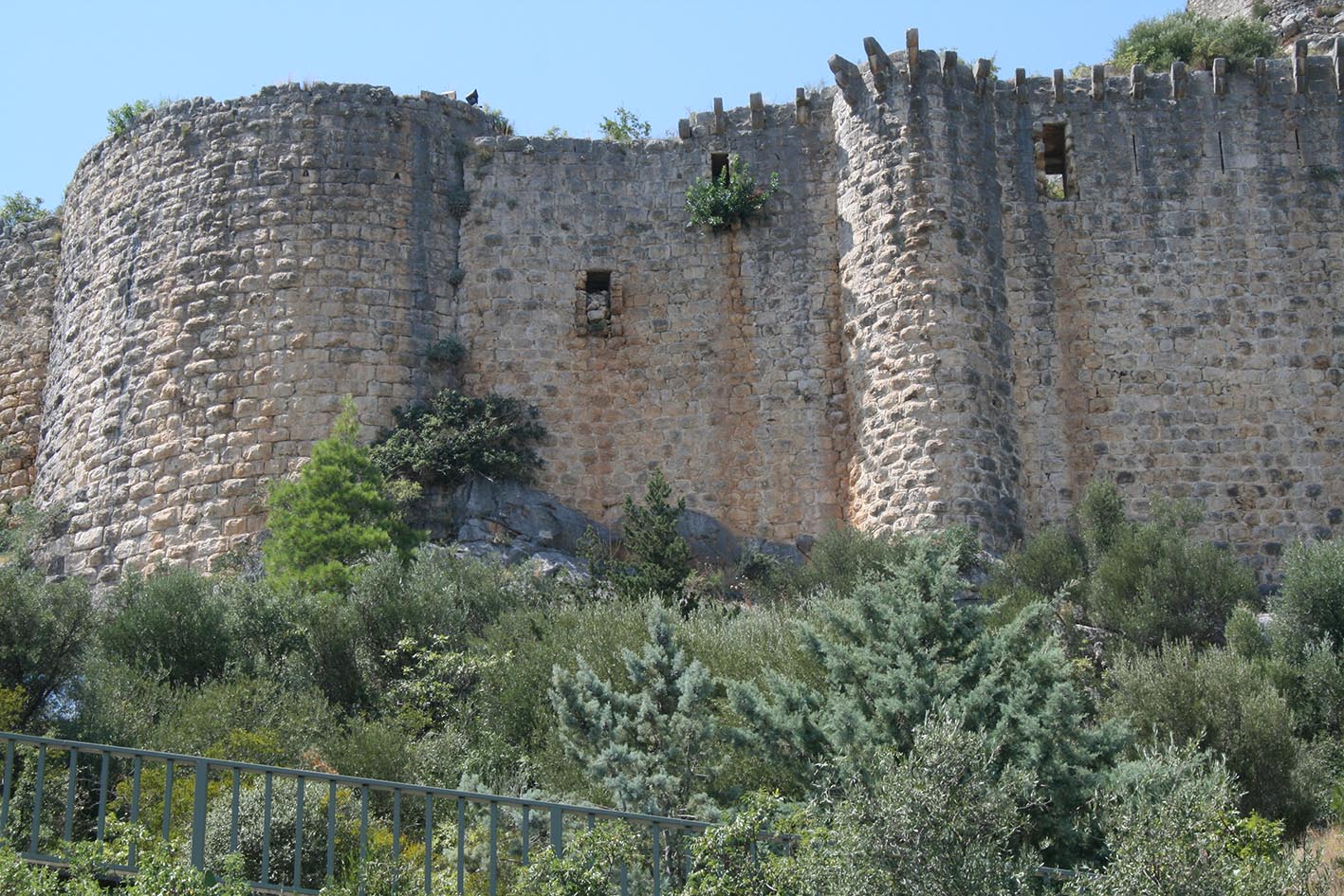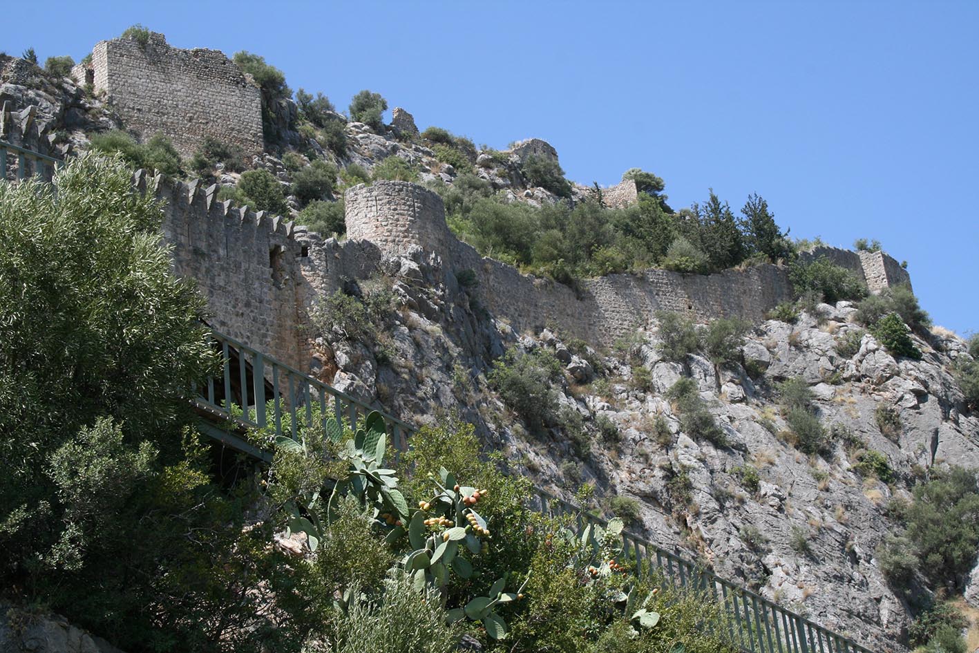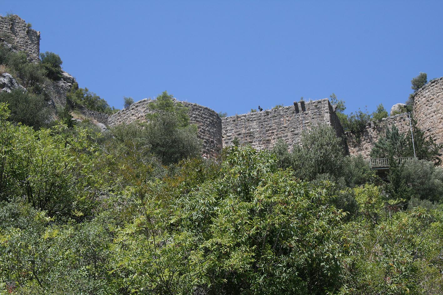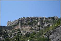 « Le château couronne le rocher sur lequel il est assis. Il ne présente que quelques buissons brûlés par le soleil, et des herbes desséchées que broutent des troupeaux de chèvres et de moutons (…).
