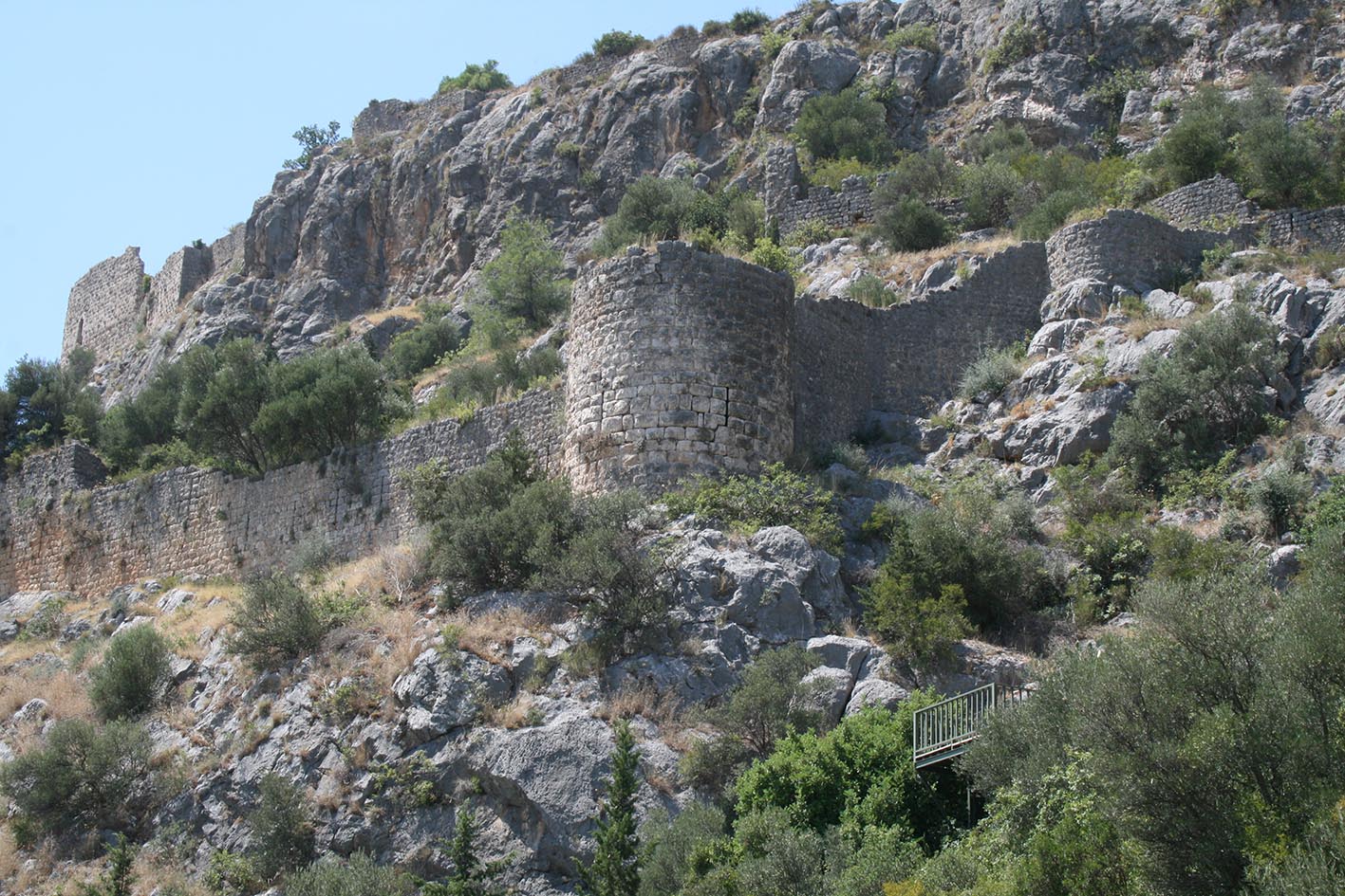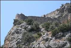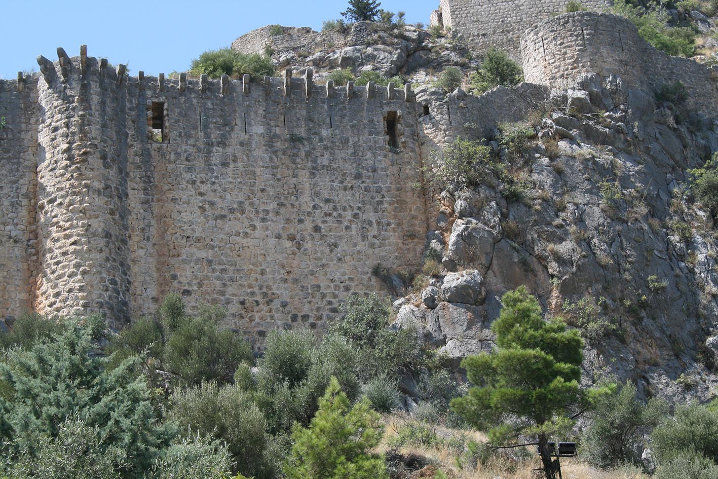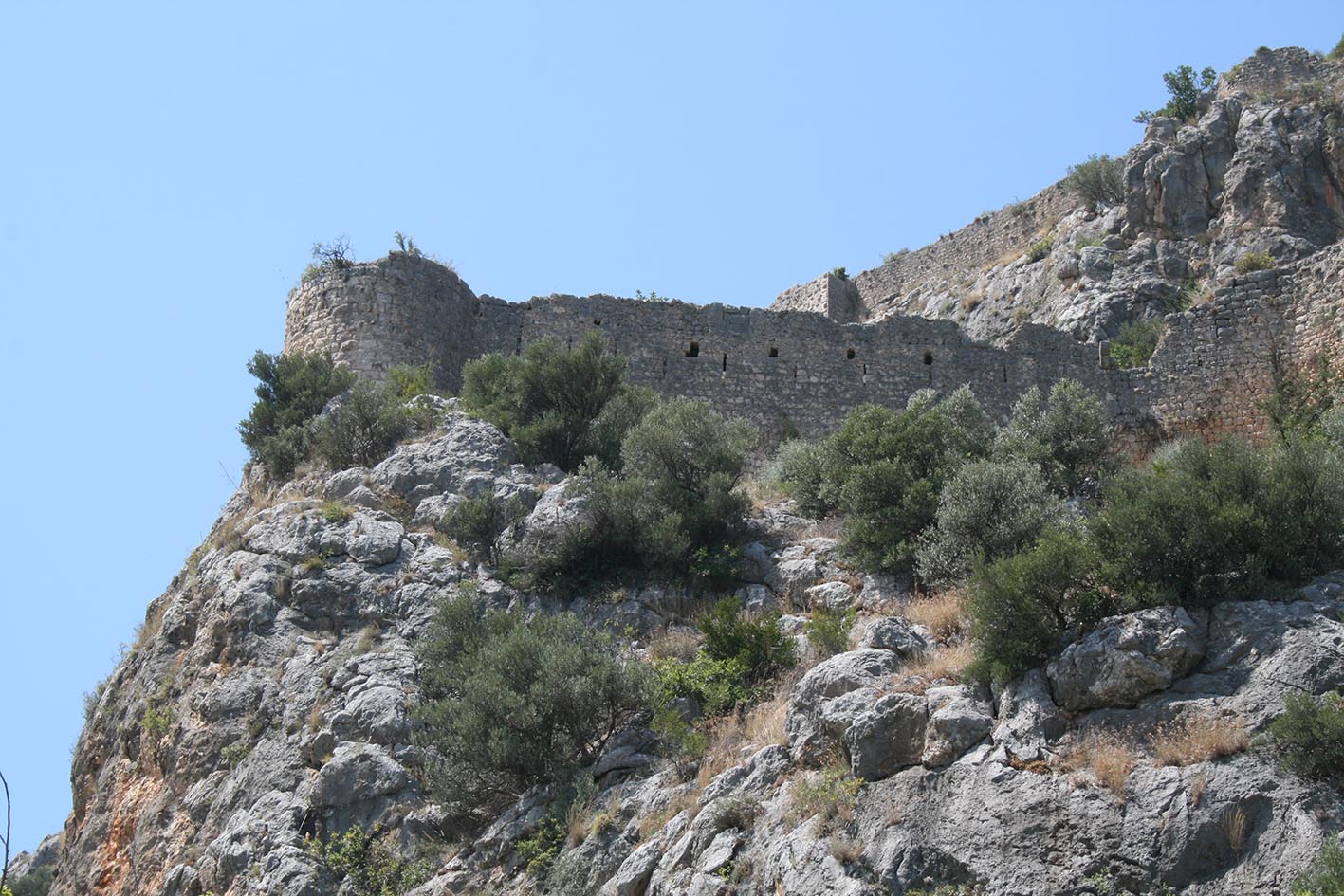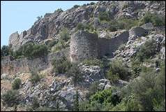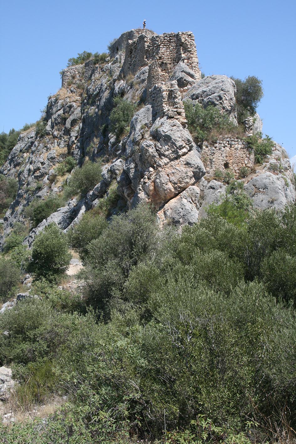 « Le château couronne le rocher sur lequel il est assis. Il ne présente que quelques buissons brûlés par le soleil, et des herbes desséchées que broutent des troupeaux de chèvres et de moutons (…).