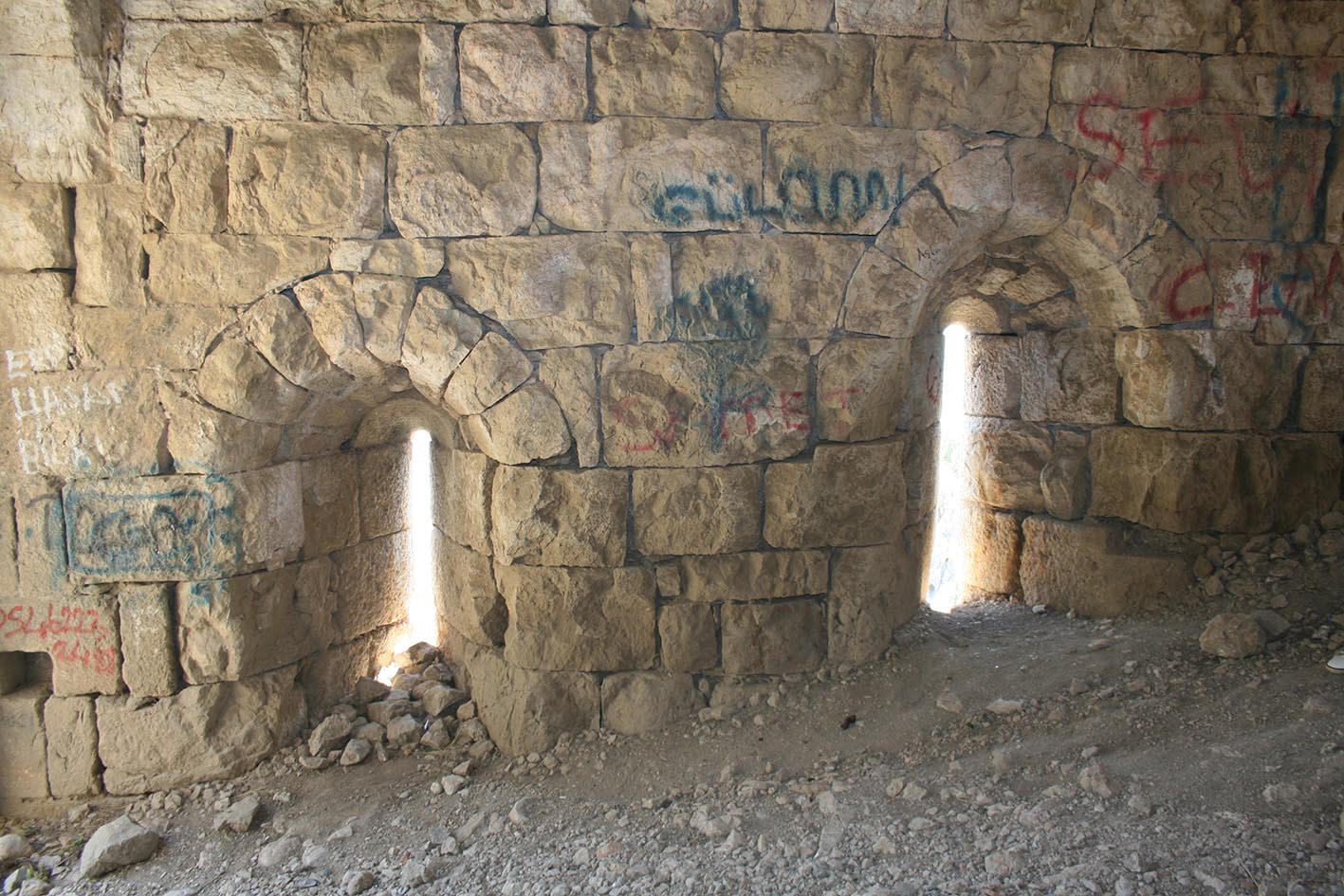 La partie du château élevée sur le deuxième pic de la montagne paraît avoir plus souffert que les deux autres, pendant les différents sièges que les Arméniens eurent à soutenir contre les Seldjoukides de Konieh et les Mamelouks d’Egypte. En effet, on voit dans différents endroits des réparations très-imparfaites, exécutées à la hâte, sans le secours du ciment et du mortier ; elles consistent en moellons à peine dégrossis, et superposés par les assiégés dans le but de réparer les brèches pratiquées par l’ennemi. Ces réparations provisoires datent, sans aucun doute, des derniers temps de la monarchie arménienne, peut-être même du siège du château-fort par les Egyptiens, sous le règne de Léon VI de Lusignan.