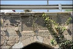 Le pont est attribué au sultan Baybars (r.17 dhu’l-qa’da 658/24.X.1260 – 27 muharram 676/30.VI.1277), identifié grâce aux lions/panthères représentés de part et d’autre des deux inscriptions de construction (ill.5, 8), c’est un pont à triple arches qui franchit le Wadî Musara/Nahal Ayalon au nord-est de Lod, en direction de Jindâs, un ancien village (aujourd’hui Ginaton) sur la route postale (barîd) developpée par le sultan.[1]