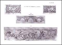 The two inscriptions are flanked by a pair of low bas-reliefs poorly cut, each displaying a lion seen in profile, enclosed in a rectangular frame. The two animals, which are similar on either side of the bridge, face one another in the same attitude, "passant" and "leopard" to speak heraldically. They are indifferently executed in pure Arab style. The lion on the right has his right paw raised ; in front of him, beneath the threatening claws, sits a tiny quadruped, seen in profile, which, from its pointed nose and ears as well as its long tail bent vertically along its back, can only be taken for a rat or squirrel, or perhaps a jerboa (?). The little creature has its front paws stretched out towards the lion, apparently in an attitude of entreaty.