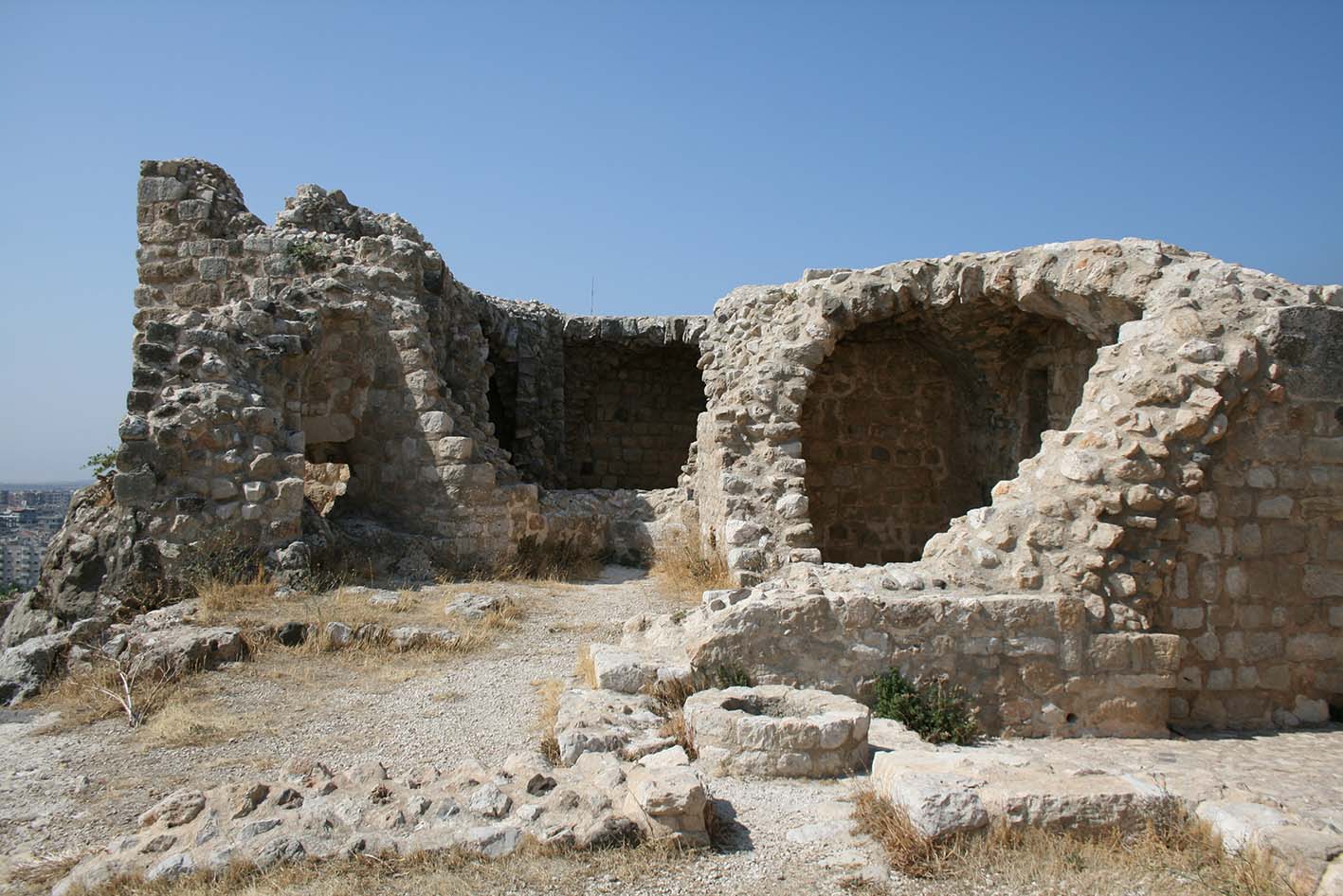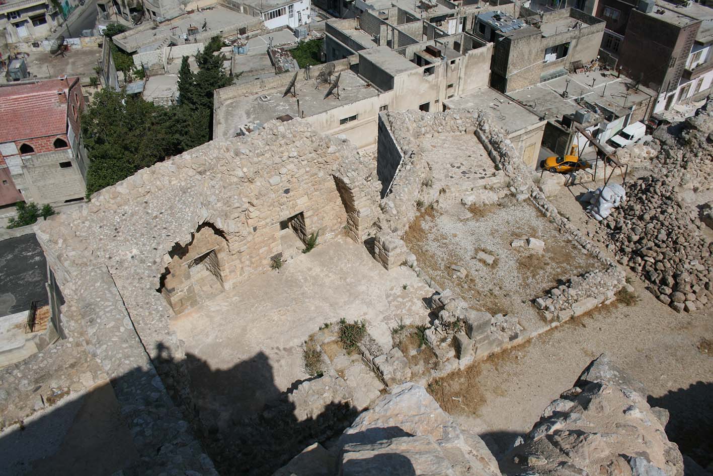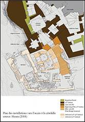 La citadelle est construite sur le promontoire rocheux, mesurant 145x60m, à l’est de la vieille ville. L’occupation du site commence fin 10e siècle sous les Hamdanides, avec l’installation de tribus locales, un donjon, une tour d’angle et des salles adjacentes au donjon sont construits au sommet du promontoire.