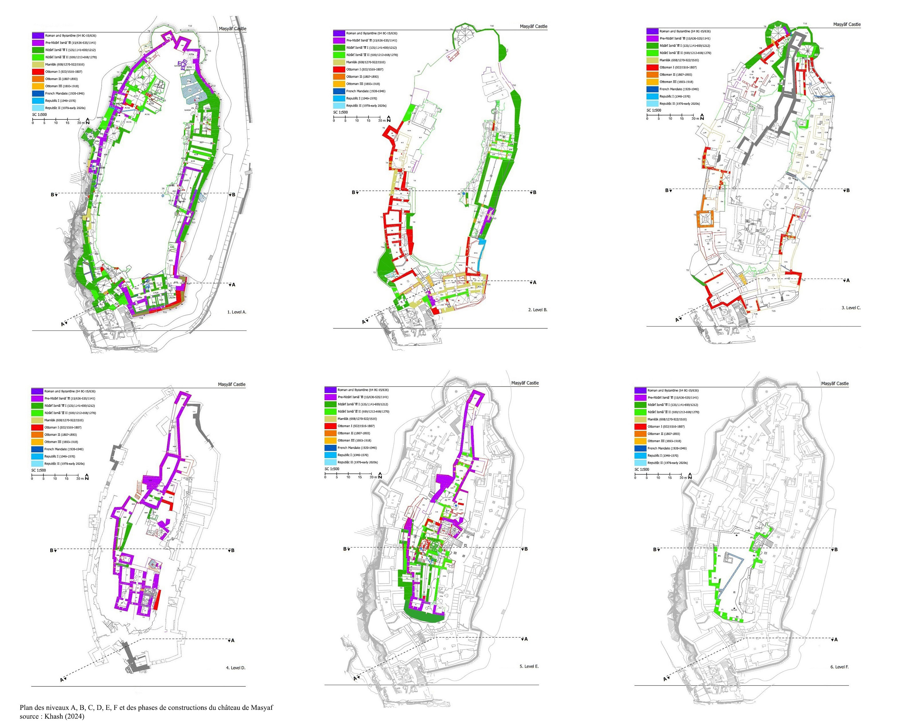Après cette 1e phase durant le 12e siècle, les Nizarites continuent leurs travaux de renforcement des parties faibles du site au début du 13e siècle avec notamment la tour pentagonale sud (ill.25, 26, 31).