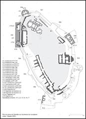 L’enceinte intérieure présente des tours quadrangulaires peu saillantes (en chiffre romain sur plan, ill.1) et une église (ill.79-82). Cette phase correspond aux travaux des Francs.
