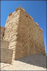 En 1171 Saladin assiège la forteresse une première fois sans succès, deuxième tentative en 1172-1173 et finalement en 1175 il saccage l’arrière pays. La forteresse n’est pas prise suite à la bataille de Hattîn en 583/1187 mais capitule en Mai 585/1189 et passe sous contrôle des Ayyûbides. A la mort de Saladin en 589/1193, elle est récupérée par le sultan al-‘Adîl (r. 592/1196 – 615/1218) et en 1208 par al-Mu’azzam ‘Isa alors sous tutelle (r. 615/1218 – 624/1227). La forteresse est durement touchée par le séisme de 610/1212.[3]