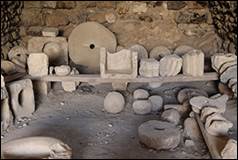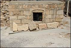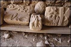 Le bâtiment VIII (sur plan), sert de réserve et conserve un grand nombre de textes épigraphiques découverts lors de fouilles (ill.83-92), ils sont en partie publiés.[12] D’autres inscriptions sont aussi déposées vers l’entrée du château et vers la tour T09 (ill.29, 73, 74).