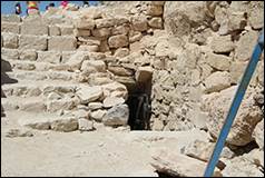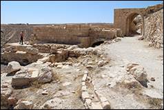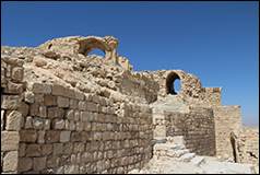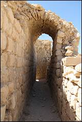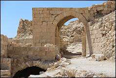 J'ai pu, pendant cette inspection générale, me faire une idée assez complète de la position de Chaubak, et j'ai pris une série de notes qui m'aideront à tracer assez exactement un plan topographique de ce rocher. A l'entrée de la ville subsiste encore une des arcades qu'Irby et Mangles avaient signalées pendant le voyage qu'ils firent dans ces contrées au commencement de ce siècle : c'était sans doute une espèce de porte triomphale qui donnait accès dans