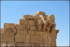 comme celles de Karak, au règne de Daher Bibars, appartiennent à une autre époque. On remarque aussi dans certaines parties des murailles et éparpillées à différentes hauteurs, des pierres portant des fragments d'inscriptions. Cette particularité indique évidemment que les murailles, détruites une première fois, ont été refaites avec peu de soin à une époque que l'histoire seule pourra nous permettre de déterminer.