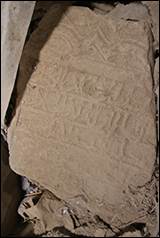 ca.697/1298. Epitaphe 3 lignes conservée dans le bâtiment VIII (inscription n°13 sur plan, ill.2, 89).[25]