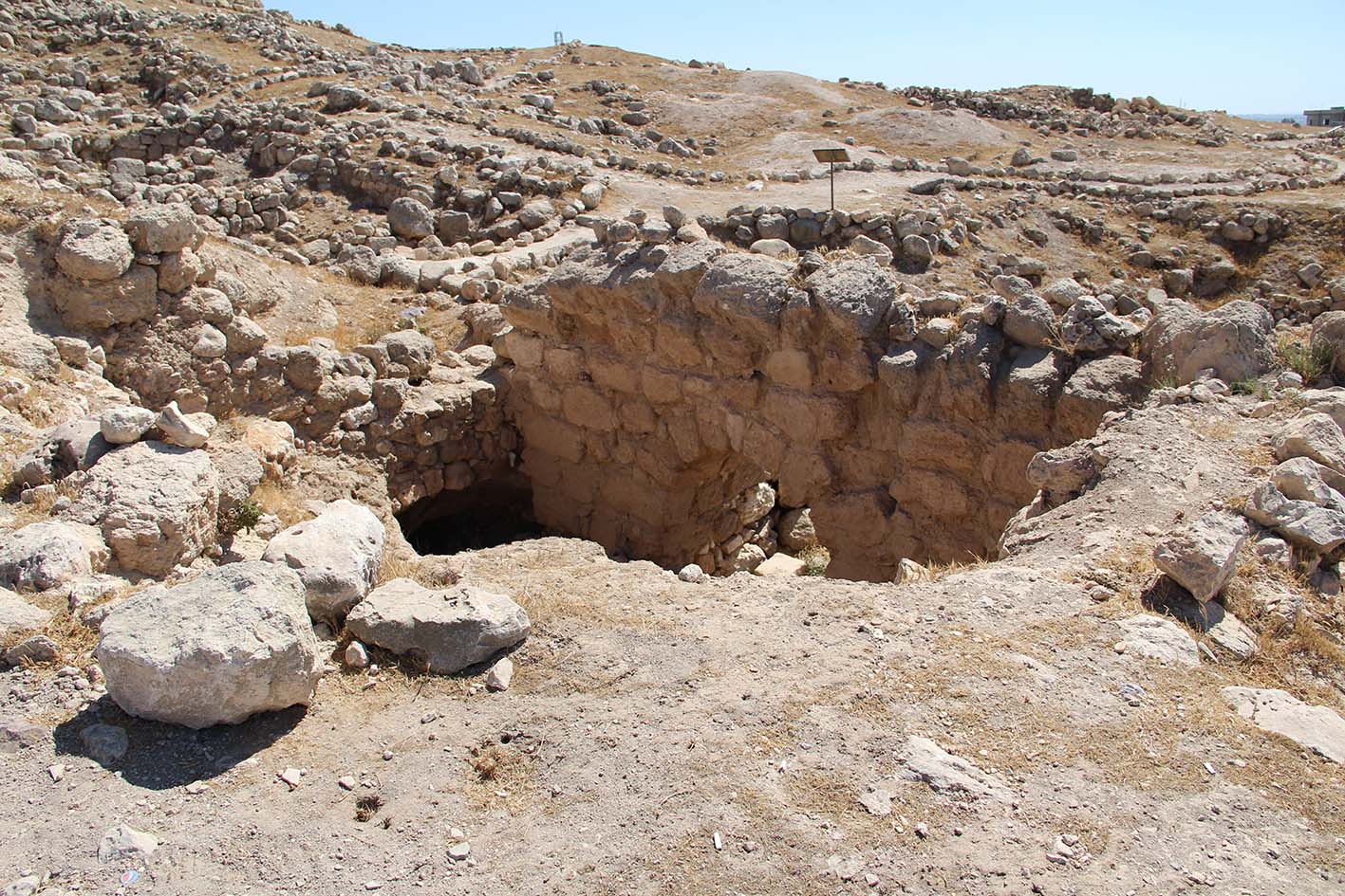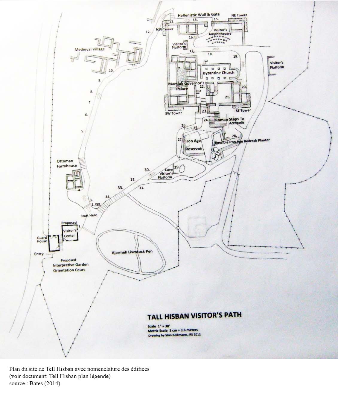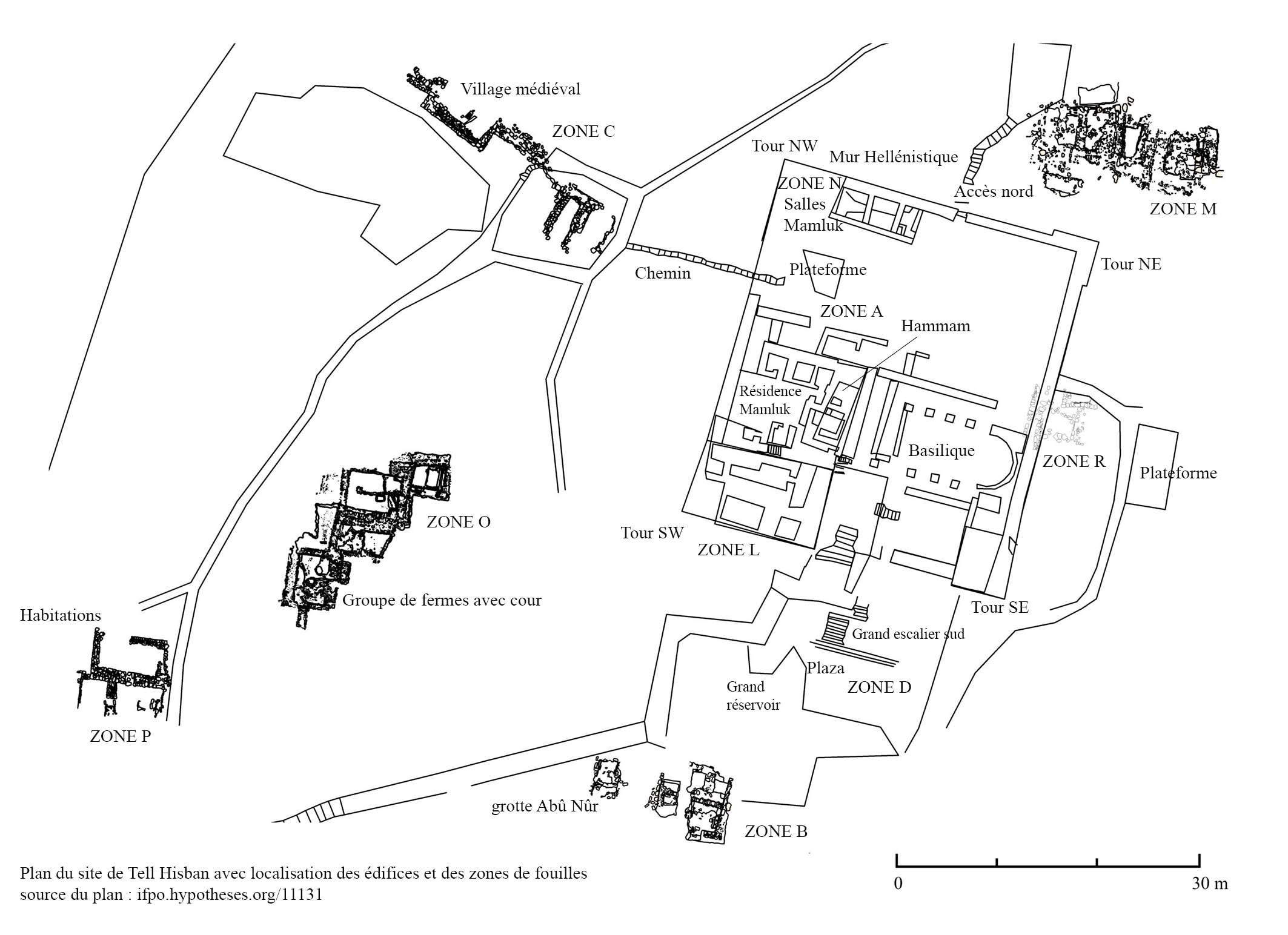 Zone G[8] : plusieurs zones éparpillées sur le tell dont le grand réservoir et quelques grottes autour servant de citernes et réutilisées par les Mamluk pour stocker l’eau. Cette zone G inclue aussi les environs du tell dont le village au sud avec les bâtiments Ottomans[9] (ill.3).