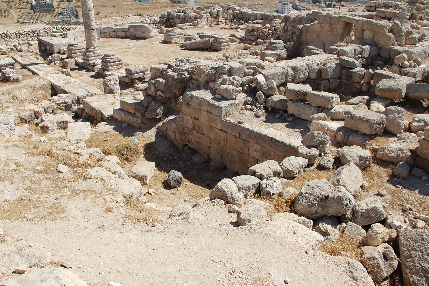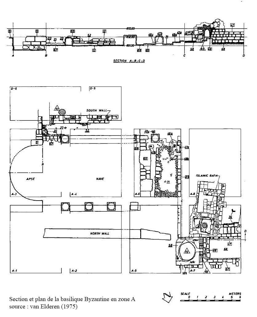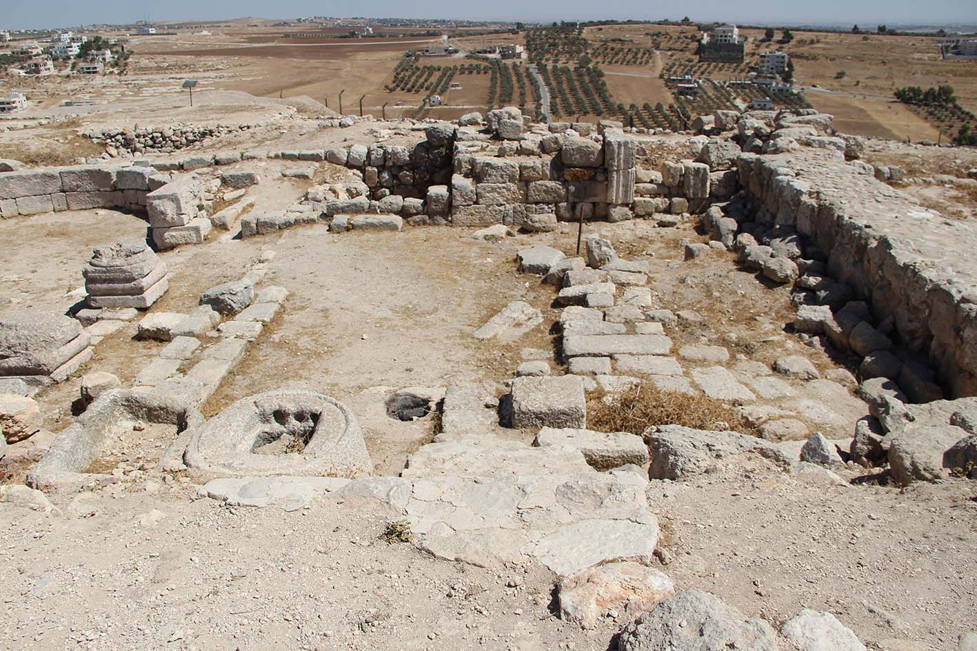 Zone A[2] : le hammam (zone A7 A8) et la Basilique au sommet du tell, largement fouillés durant la phase Heshbon Expedition.