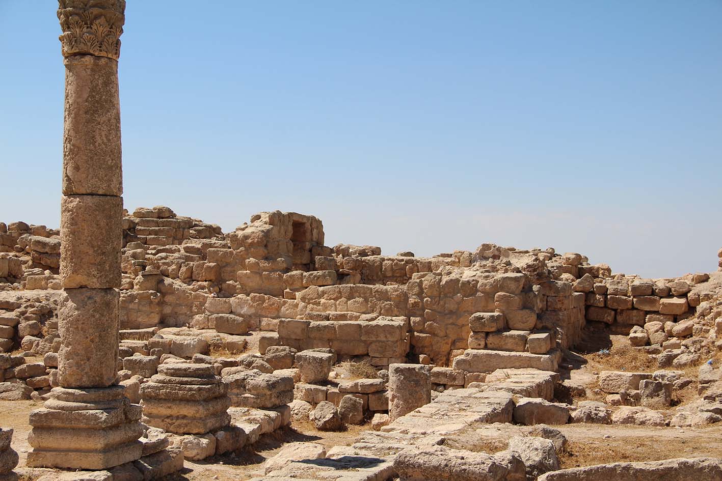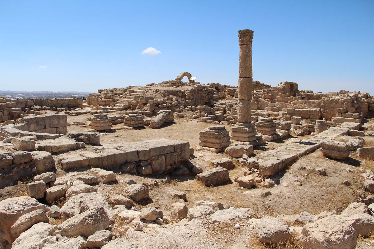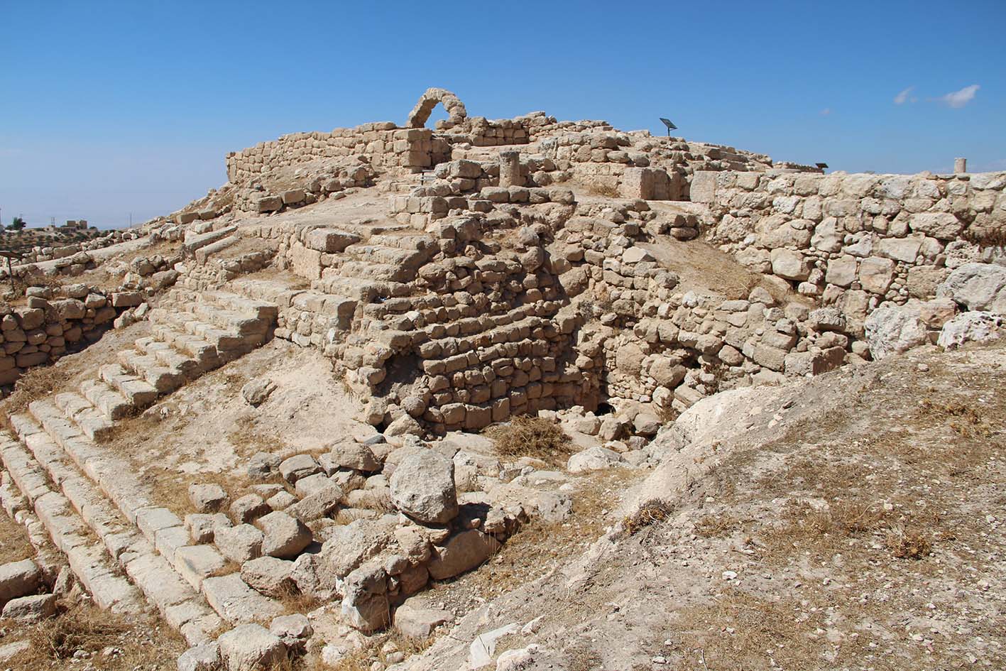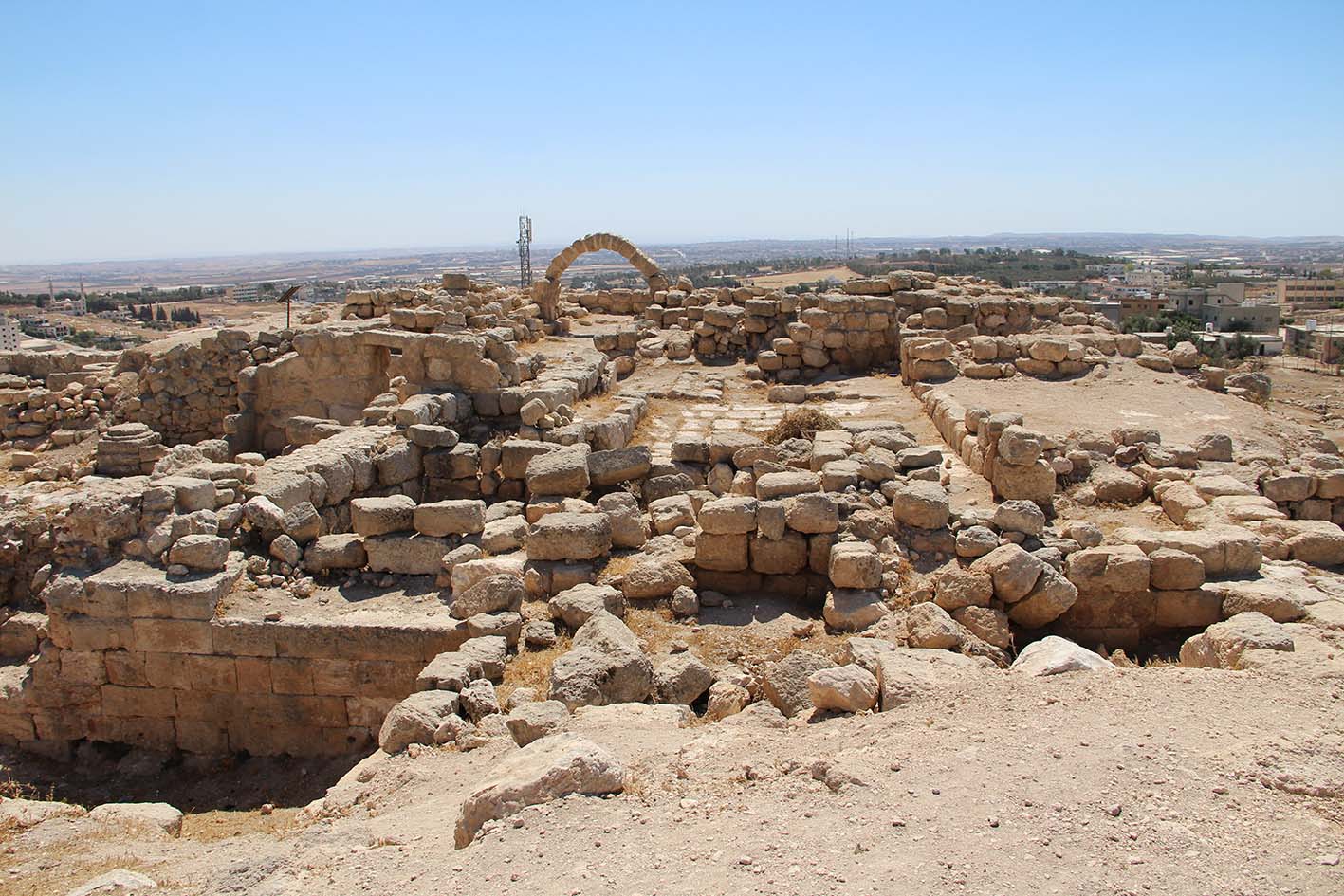 Situé sur la Route du Roi à 25km au sud de ‘Amman, le site est perché sur un tell à 800m d’altitude.